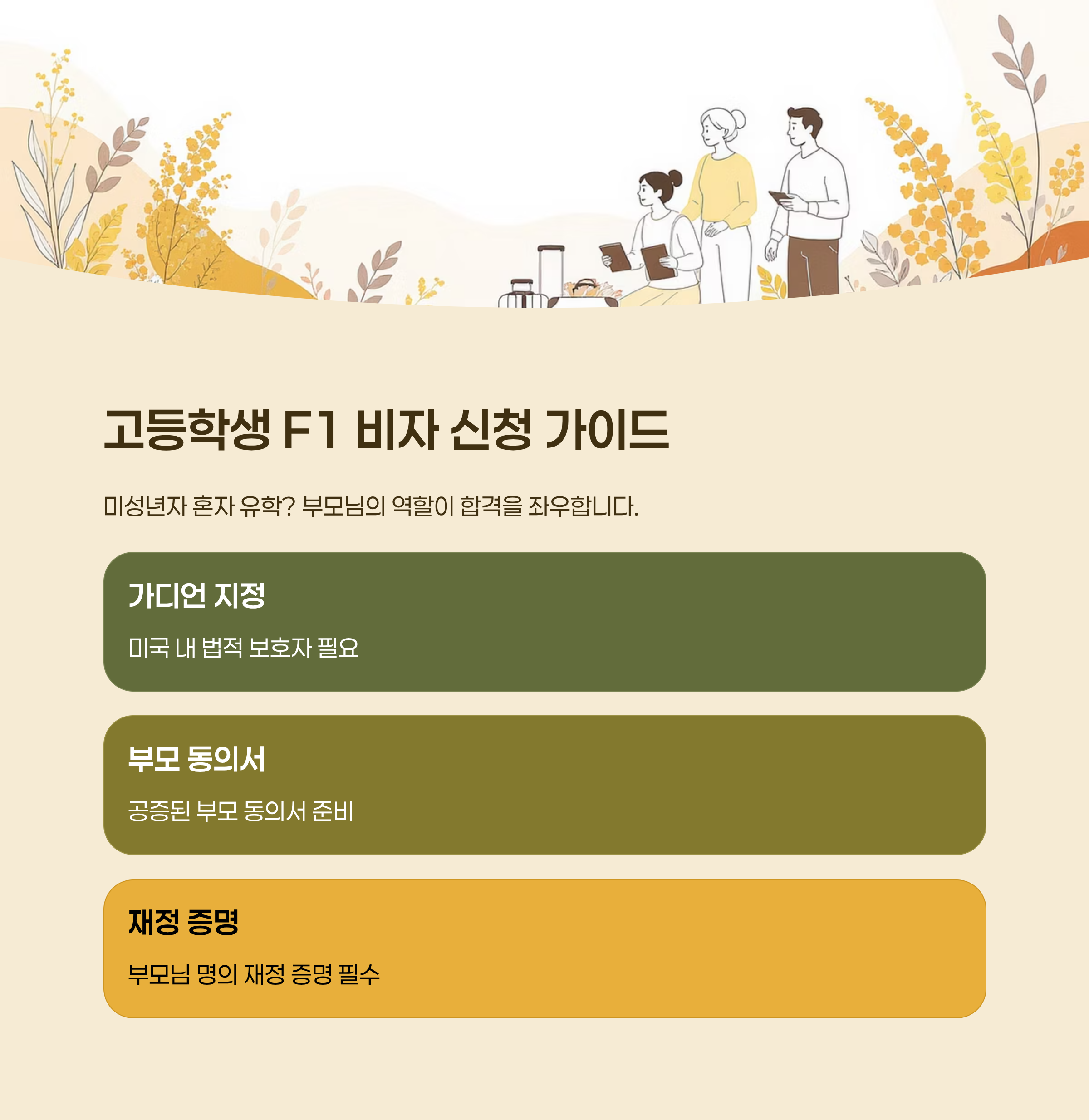 고등학생 자녀의 미국 유학을 계획하고 계신가요? 성인 유학생과 달리 미성년자의 F1 비자 신청에는 부모님의 역할이 절대적입니다. 단순히 서류만 준비하면 되는 것이 아니라, 자녀의 안전과 학업 성공을 위한 종합적인 계획이 필요하죠.
