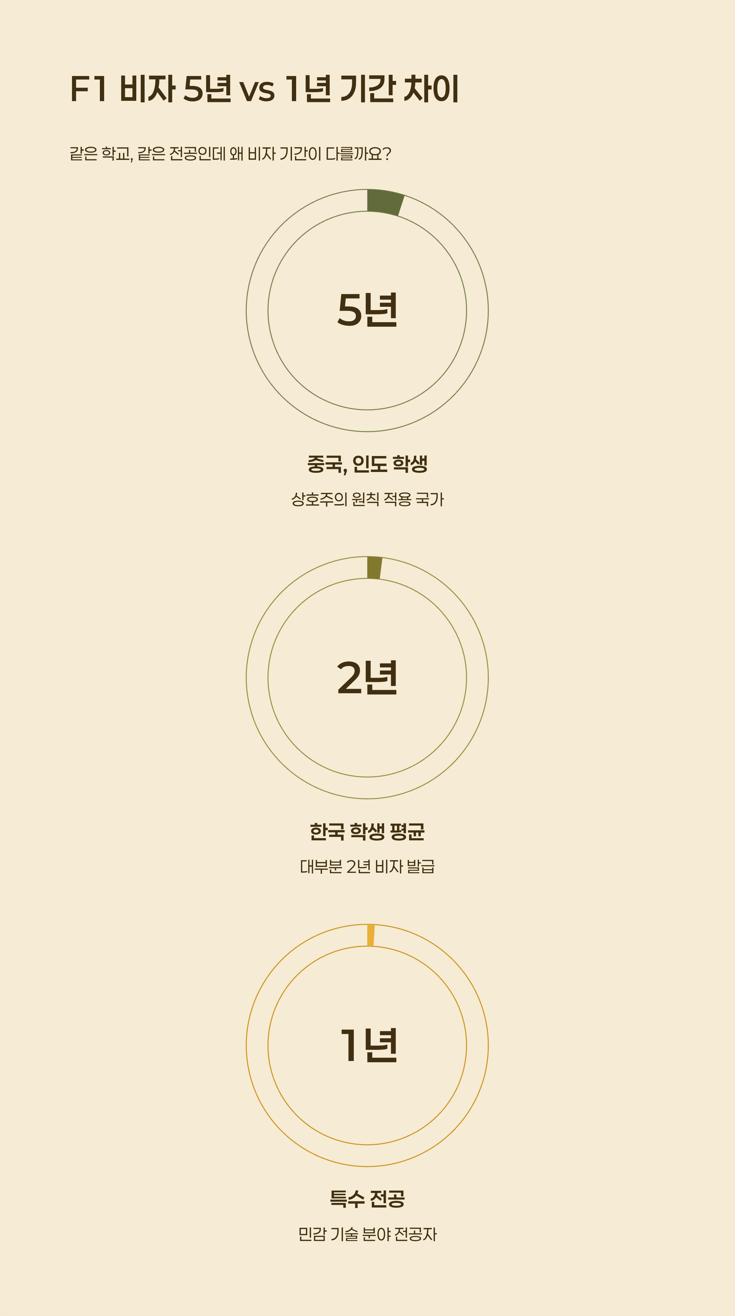 F1 비자의 유효기간을 결정하는 가장 중요한 기준은 바로 상호주의(Reciprocity) 원칙입니다. 한국 학생들이 대부분 5년짜리 F1 비자를 받는 이유도 여기에 있어요.