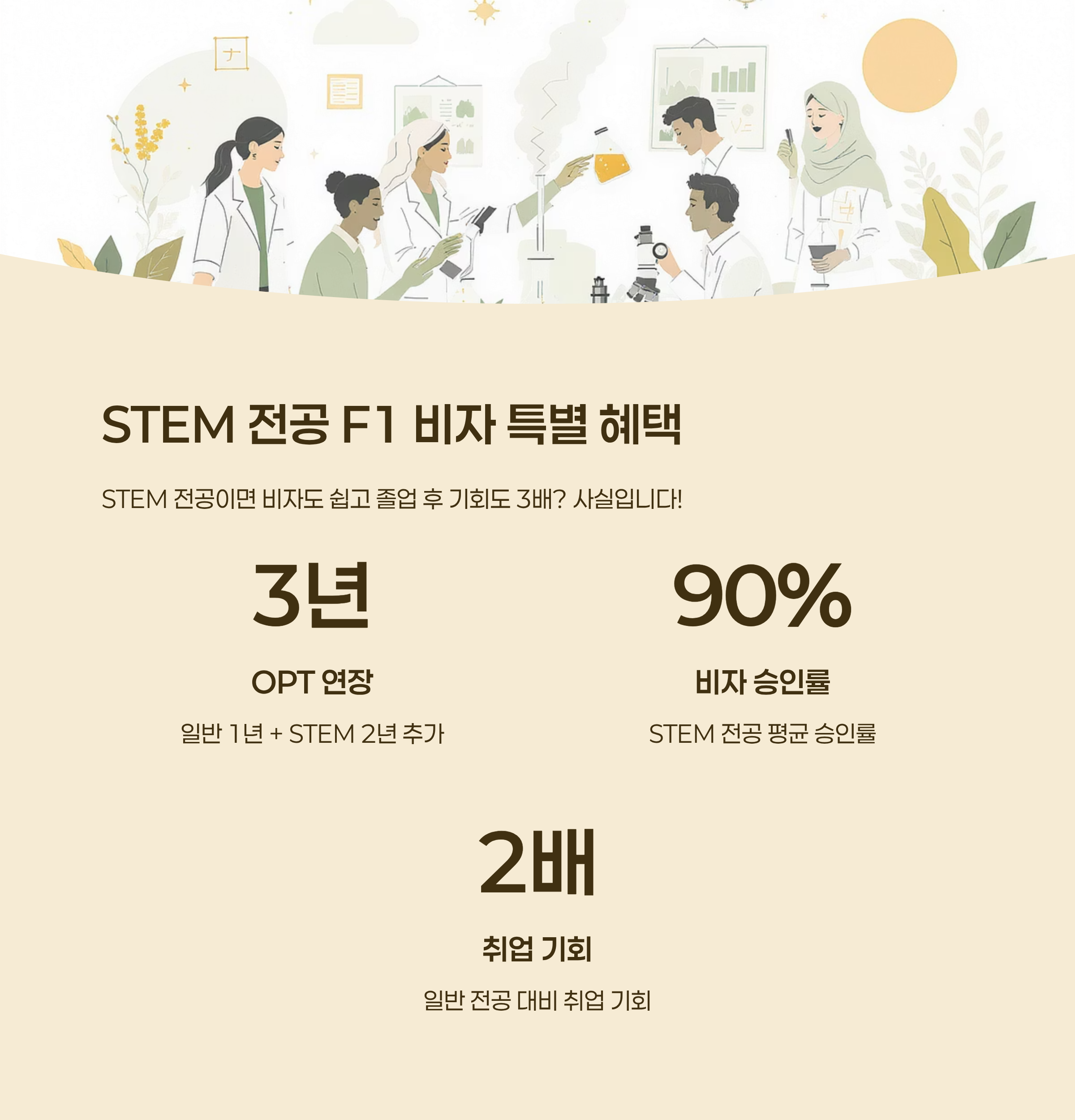 STEM(Science, Technology, Engineering, Mathematics) 전공을 고려하고 있거나 이미 공부하고 계신 분들이라면, F1 비자와 관련된 특별한 혜택들이 궁금하실 텐데요. 사실 STEM 전공자들에게는 일반 전공자들과는 다른 차별화된 혜택들이 있습니다.